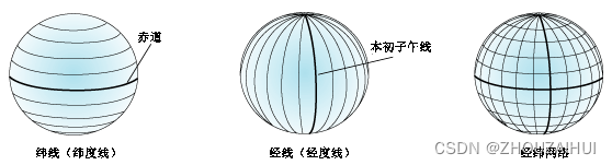 位于两极点中间位置的纬线称为赤道。它定义的是零纬度线。零经度线称为本初子午线。对于绝大多数地理坐标系,本初子午线是指通过英国格林尼治的经线。其他国家/地区使用通过伯尔尼、波哥大和巴黎的经线作为本初子午线。经纬网的原点 (0,0) 定义在赤道和本初子午线的交点处。这样,地球就被分成四个地理象限,它们均基于与原点所成的罗盘方位角。南和北分别位于赤道的下方和上方,而西和东分别位于本初子午线的左侧和右侧。