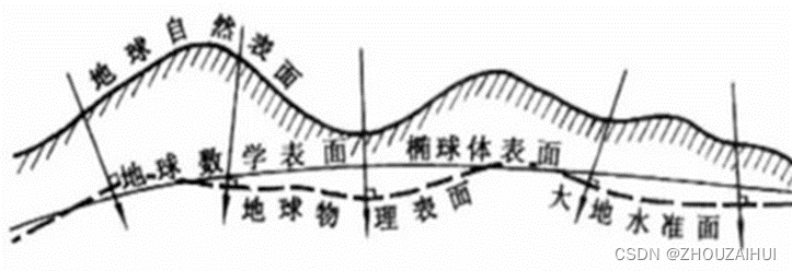 通常所说的测量工作一般是指在地球表面进行的,因此需要有一个作为标准的测量基准才能保证测量工作的准确性和延续性。这个测量基准一般会选取一个简单规则形状,而地球自然表面高低起伏不平,不能作为测量工作的基准。应该寻找一个与地球自然表面十分接进而且相对简单的规则曲面来代替不规则的地球表面。
