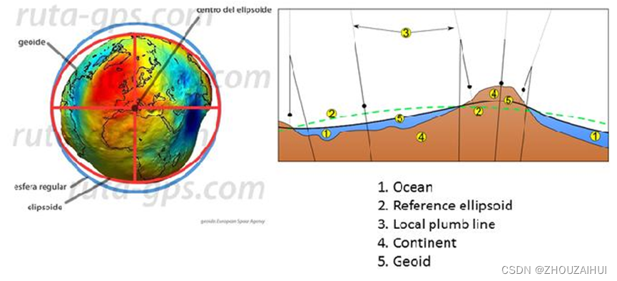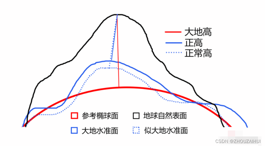 因此地面点的位置表示的时候实际上是分成两部分:(1)大地水准面投射下来的点位置;(2)地面点沿重力方向线投射到大地水准面的铅垂距离。