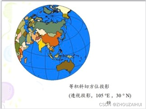 (2)斜轴投影:极点既不在两极上又不在赤道上,或投影面的中心线与地轴斜交。