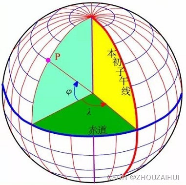地理坐标系(Geographic Coordinate System,GCS)使用三维球面来定义地球上的位置。点要素可通过其经度和纬度值进行引用。经度和纬度是从地心到地球表面上某点的测量角。通常以度或百分度为单位来测量该角度的值。