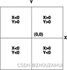 在等间隔水平线和垂直线的格网化网络中,中央水平线称为 x 轴,而中央垂直线称为 y 轴。在 x 和 y 的整个范围内,单位保持不变且间隔相等。原点上方的水平线和原点右侧的垂直线具有正值;下方或左侧的线具有负值。四个象限分别表示正负 X 坐标和 Y 坐标的四种可能组合。