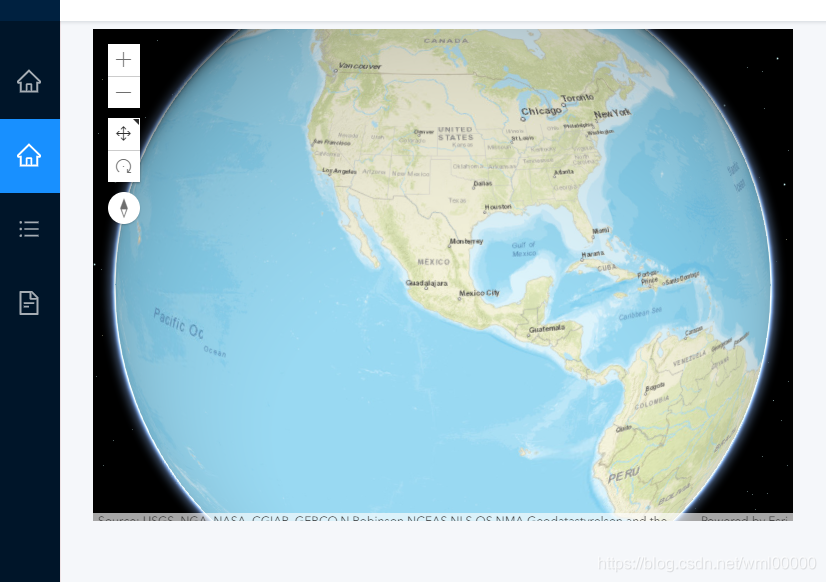 <!doctype html><html lang="en"> <head> <meta charset="utf-8"> <title>Webview</title></head><link rel="stylesheet" href="http://localhost/arcgis_js_v410_api/arcgis_js_api/library/4.10/esri/css/main.css"><script src="http://localhost/arcgis_js_v410_api/arcgis_js_api/library/4.10/init.js" data-esri-loader="loaded"></script> <body> <!--<app-map></app-map>--> <div id="viewDiv" style="width: 700px; height: 500px"></div> <script> require([ "esri/Map", "esri/views/SceneView" ], function (Map, SceneView) { var map = new Map({ basemap: "streets", ground: "world-elevation" }); var view = new SceneView({ container: "viewDiv", // Reference to the scene div created in step 5 map: map, // Reference to the map object created before the scene scale: 50000000, // Sets the initial scale to 1:50,000,000 center: [-101.17, 21.78] // Sets the center point of view with lon/lat }); }); </script></body> </html>左侧菜单2
