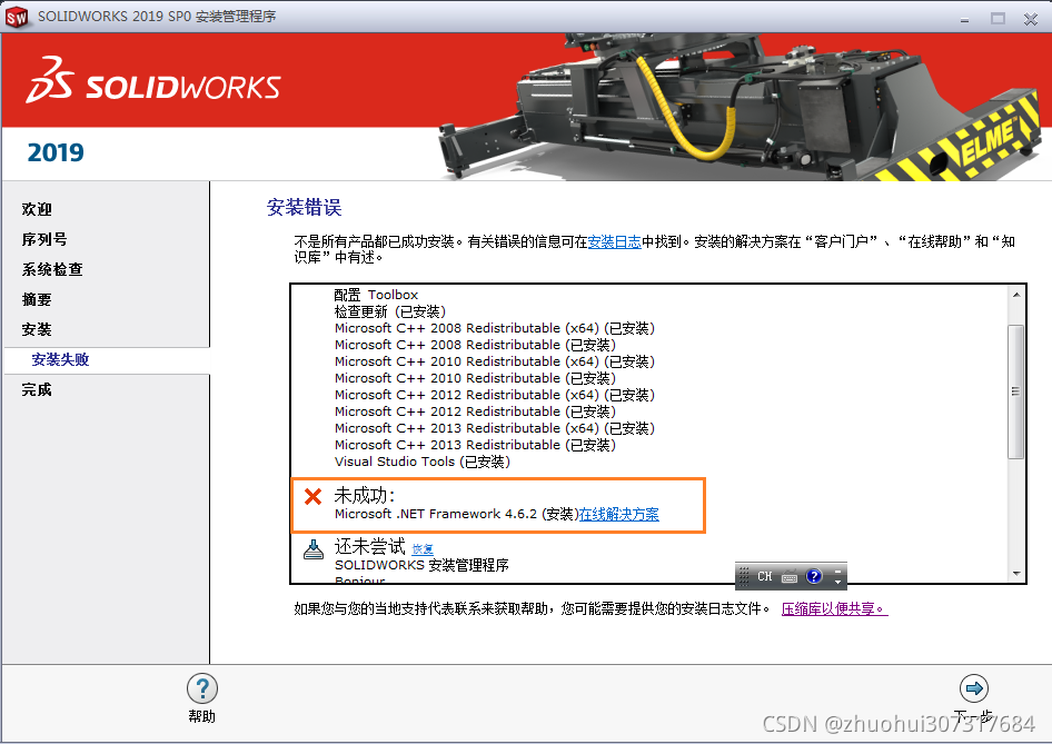 把net framework 安装好后再试一遍即可。既然提示的是 4.6.2 的版本,就下载这个版本的 net framework 安装后再试吧。下载后,发现 net framework 要连上网络才能安装的。