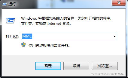 2.开始→运行→MMC