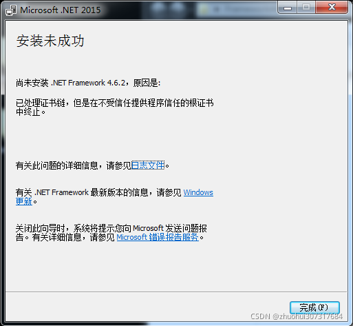 参考:[记录]安装.Net Framework 4.6.2时出现“无法建立到信任根颁发机构的证书链”解决方法..._abc020188的博客-CSDN博客
