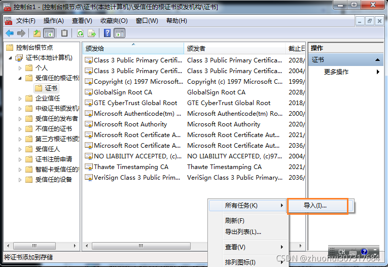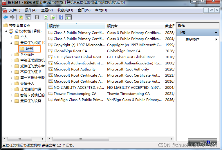 5.回到窗体,展开:证书→受信任的根证书颁发机构→证书