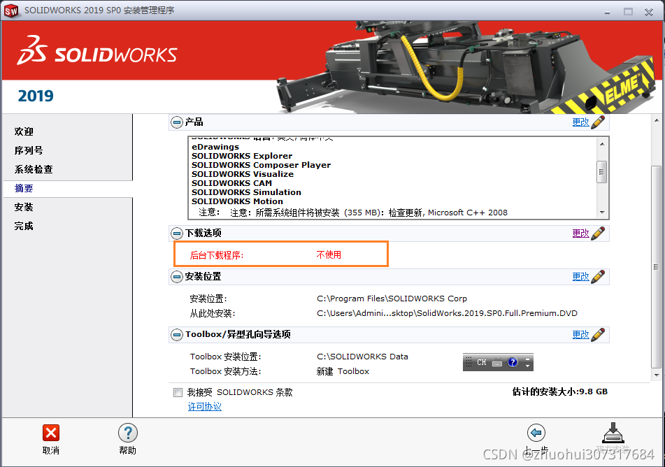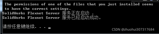 咋也不知道啥原因,只能重启电脑, 再从 “4.打开 C:\SolidWorks_Flexnet_Server\server_install”这一步开始。重启后果然不再提示这个问题。