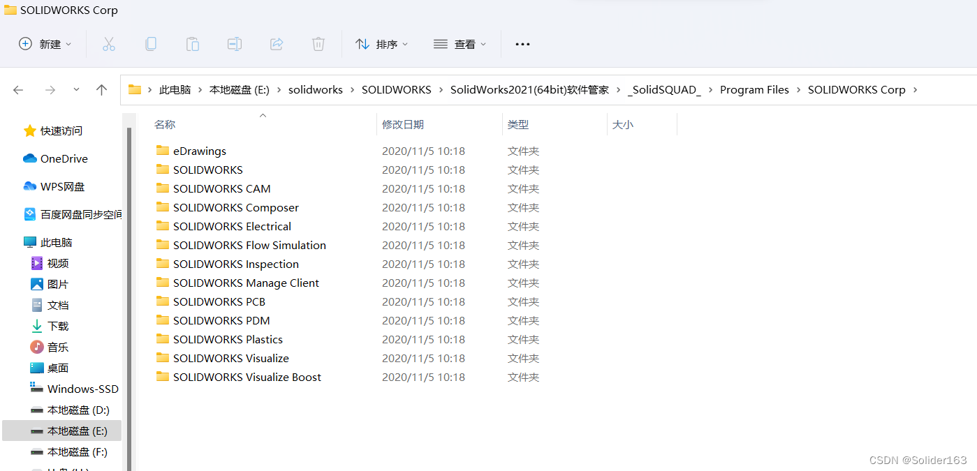 3.依次点开Program Files / SOLIDWORKS Corp,然后你会看到如下图几个文件(文件多少可能与你安装时选择安装的项目数量有关,不影响本流程),将这几个文件全部选择复制。