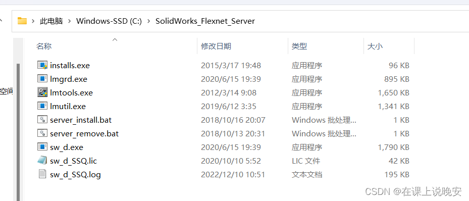 1.找到根目录中的SolidWorks_Flexnet_Server,点击进入会看到下面几个文件。