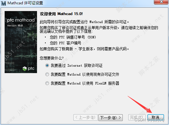 12、Mathcad许可证设置,在这里我们不选择任何许可证,直接点击退出。切记!