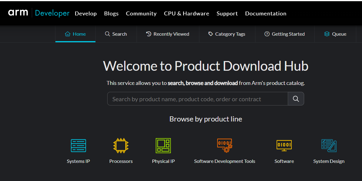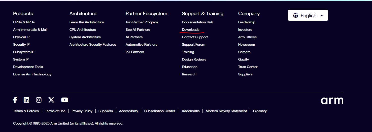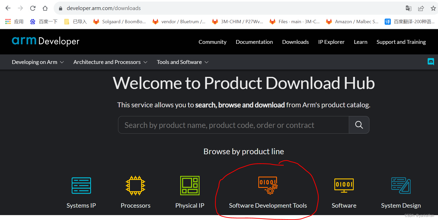 在主页的底部页面,有一个Downloads链接。点击可以跳转到Product Download Hub.