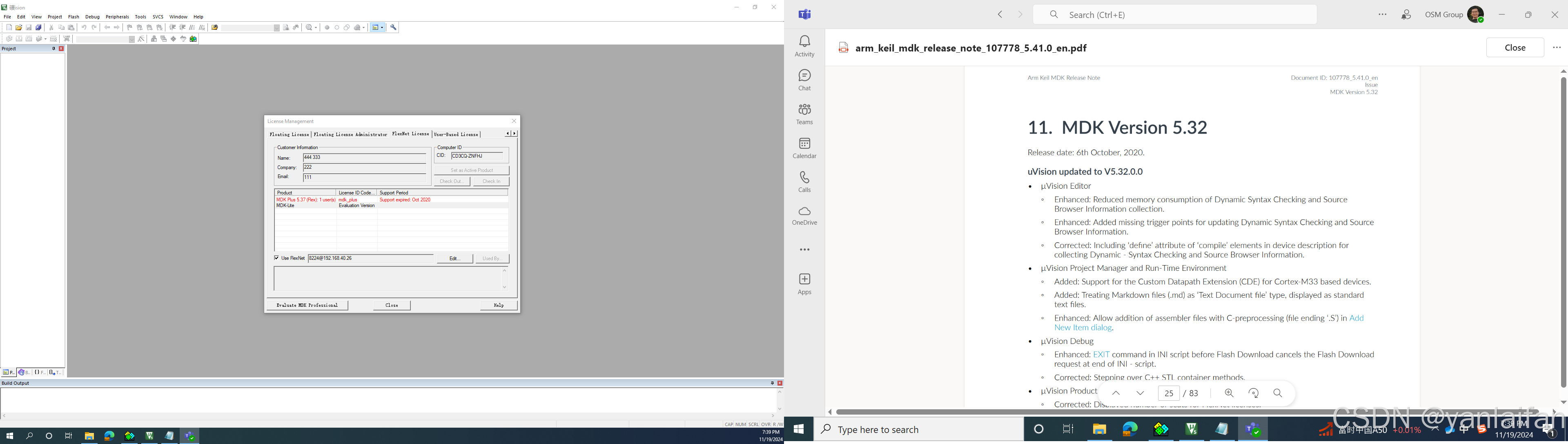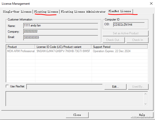 Keil MDK V5.32是在2020年10月6号释放,当时使用的license有限期只能支持到2020年10月。License可以正常匹配,添加成功。