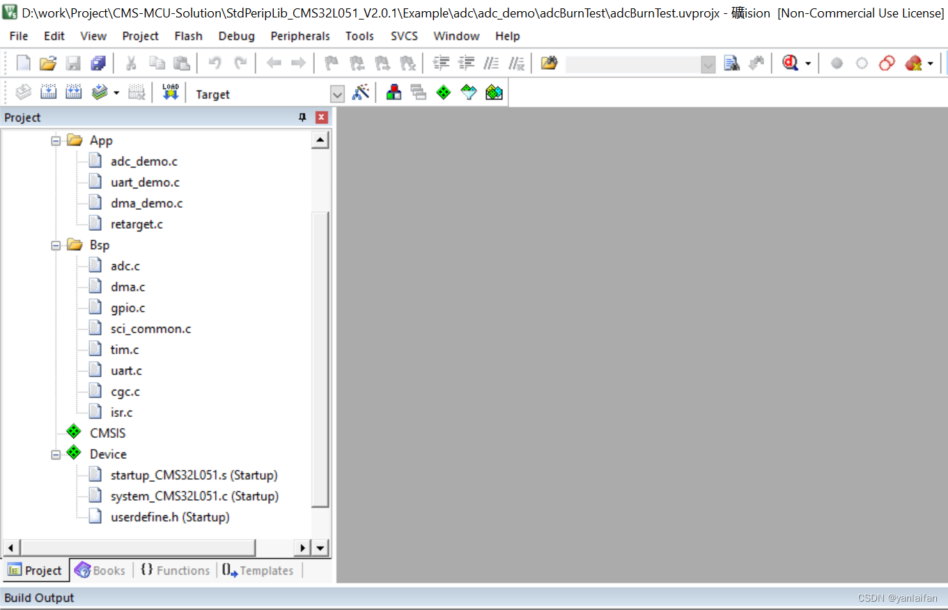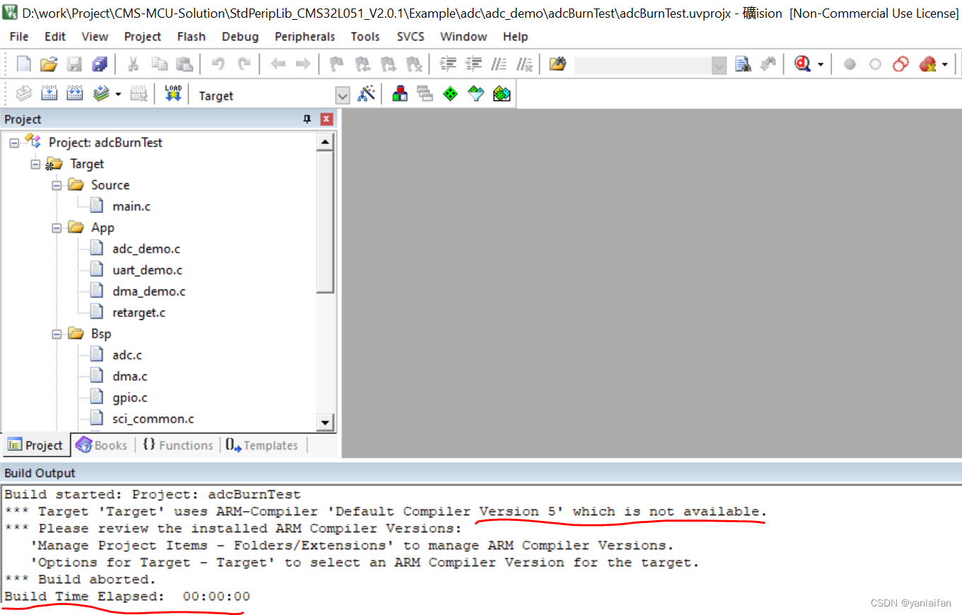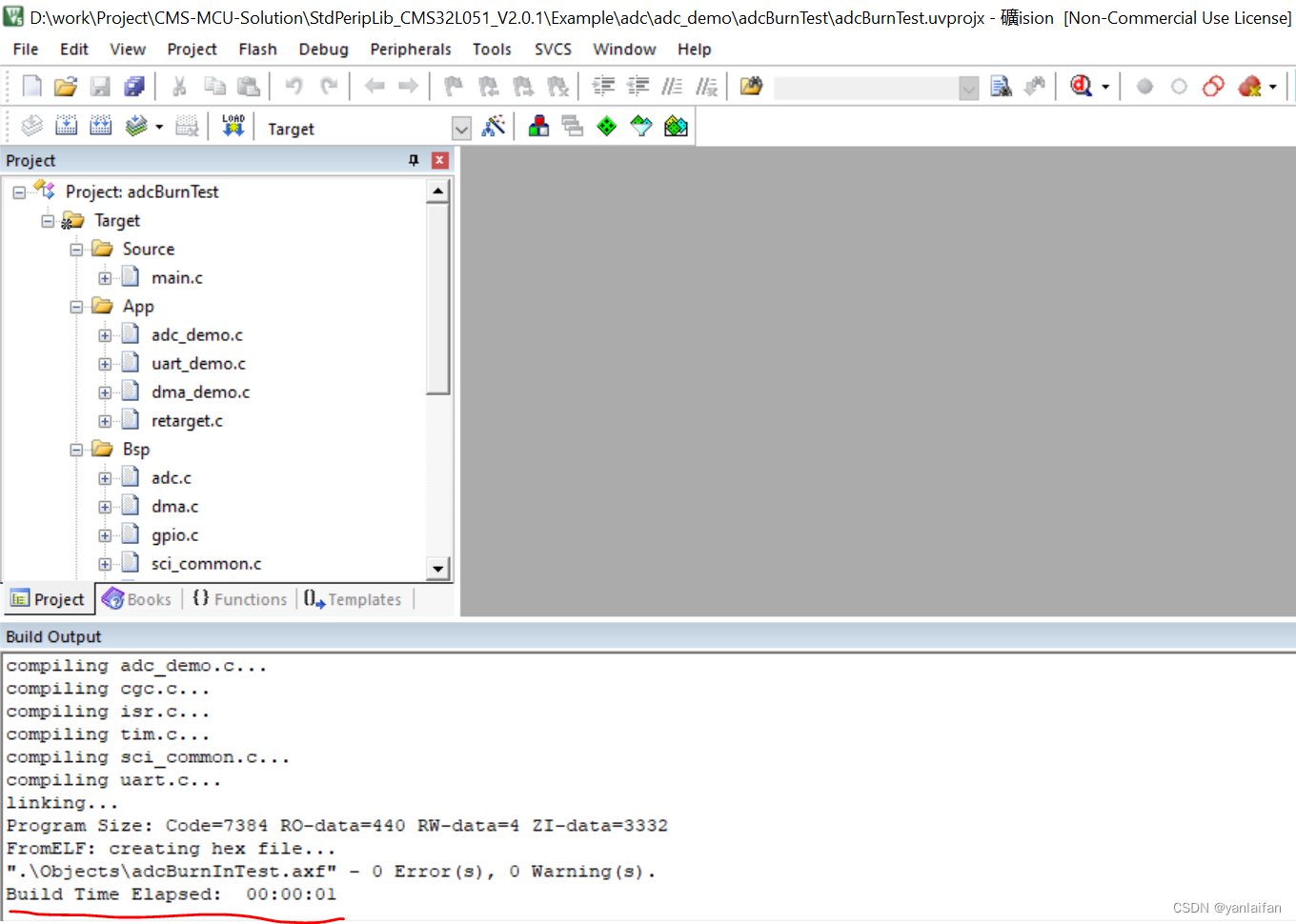 打开一个已有的Keil uvision工程,检测是否可以正常编译。