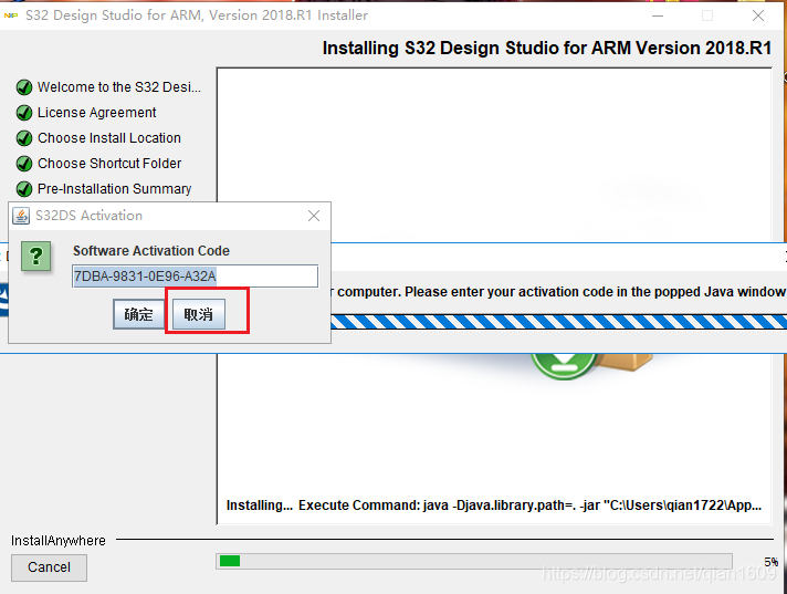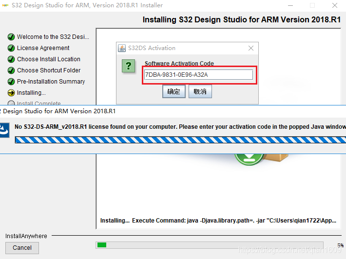 输入申请的激活码,点击确定