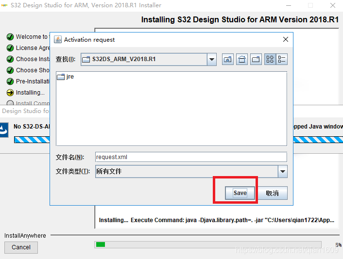 会弹出文件框,将文件保存到安装目录中