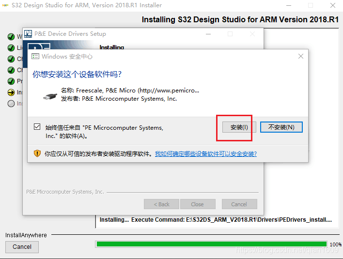 中间会有两次弹出弹窗,选择安装即可