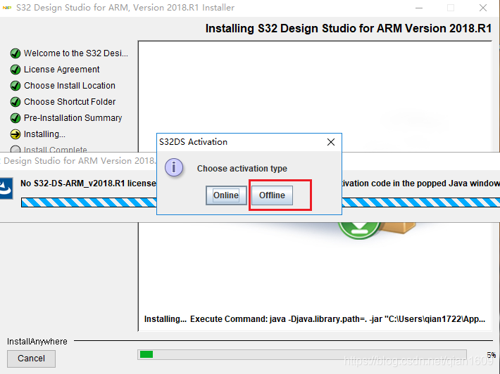 选择离线激活
