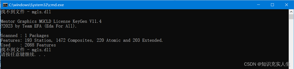 3) 解决 成功后,重新运行patch64_dll.bat脚本,此时内容显示如下图,就说明破解成功。