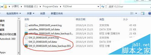 3、(删除之前最好备份这两个文件)删除FLEXnet文件夹下的SW_D_00481b00_tsf.data_backup和SW_D_00481b00_tsf.data两个文件。(其中SW_D_00481b00_tsf.data是隐藏文件) 。因为各种原因还是用回了win7,所以只能以win7截图展示了。