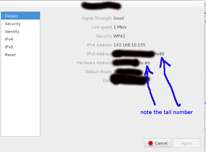You must choose which one you are using? ********1279 or *******fe80. Check your network settings: