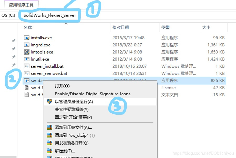 1.在C盘中找到(Solidworks- Flexnet -Sever)文件夹---------(sw-d.exe)文件以管理员身份运行