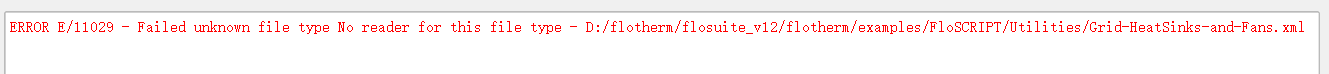 ERROR E/11029 - Failed unknown file type No reader for this file type - https://www.gofarlic.com/flotherm/flosuite_v12/flotherm/examples/FloSCRIPT/Utilities/Grid-HeatSinks-and-Fans.xml