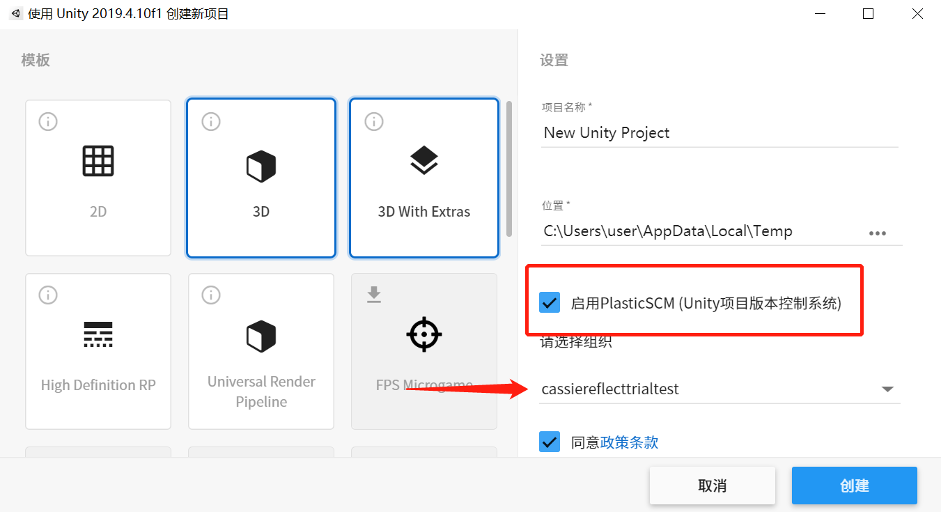 三、 在unity2.4.8之后集成了plastic scm这个版本控制系统(对于入门开发者,或者不必要使用此功能的独立开发者完全可以取消勾选) 有时候新建项目会卡在这个界面一直转圈圈: