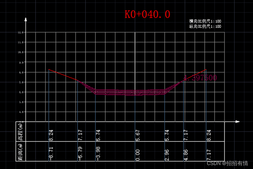 1)从剖面数据文件读入数据,筛选出最长距离、最大高程、最小高程;