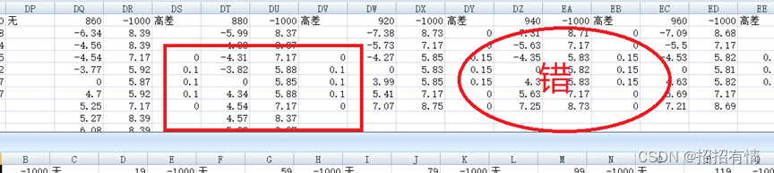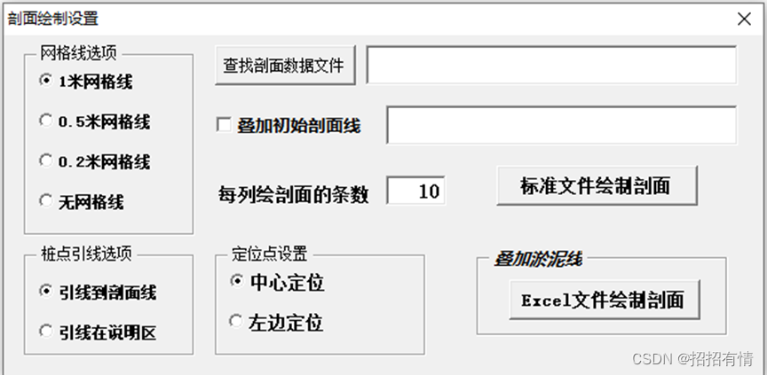 每三列为一条剖面,第一列是距离、第二列是高程、第三列是淤泥线数据,淤泥线数据的第一行有三个选项:无、高程、高差。