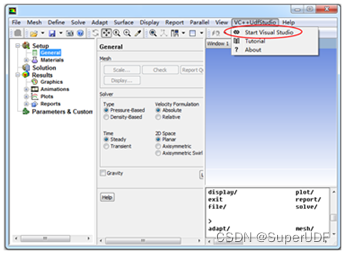 首先,我们利用VC++ UDF Studio插件(https://vcudfstudio.github.io)启动Fluent,然后再点击Fluent中的“启动Visual Studio”菜单,这样我们就可以在Visual Studio中输入源码并编译UDF了。