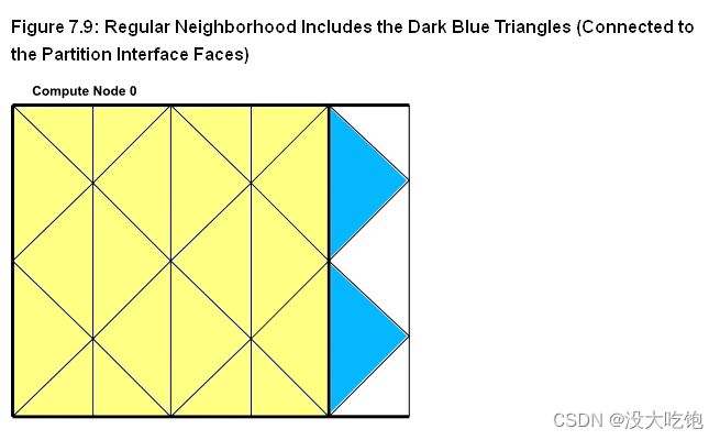 注意,每个分区边界面在相邻计算节点上重复(图7.2)。这是必要的,以便每个计算节点可以计算其自己的面值。然而,当UDF涉及包含分区边界面的线程中的求和数据的操作时,这种重复可能导致面数据被计数两次。例如,如果UDF对网格中所有面上的数据求和,则当每个节点在其面上循环时,重复的分区边界面可以计数两次。