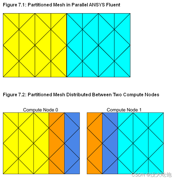 ANSYS Fluent的并行求解器通过同时使用可能在同一台机器上或网络中的不同机器上执行的多个进程来计算大型问题的解。它通过将计算域拆分为多个分区(图7.1:并行ANSYS Fluent中的分区网格),并将每个数据分区分配给不同的计算进程,称为计算节点(compute node)(图7-2:分布在两个计算节点之间的分区网格)。