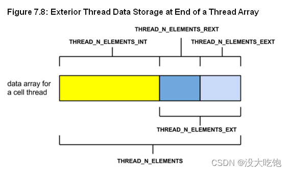 begin_f_loop(f,t) if PRINCIPAL_FACE_P(f,t) /* tests if the face is the principal face FOR COMPILED UDFs ONLY */ { F_AREA(area,f,t); /* computes area of each face */ total_area +=NV_MAG(area); /* computes total face area by accumulating magnitude of each face’s area */ } end_f_loop(f,t) 每个线程将与其单元格或面关联的数据存储在一组 数组 中。(Each thread stores the data associated with its cells or faces in a set of arrays.)例如,压力存储在阵列(array)中,单元c的压力通过访问该阵列的单元c获得。外部单元和面数据的存储发生在每个线程数据数组的末尾。对于单元线程,常规外部单元的数据出现在扩展外部单元之前,如图7.8。