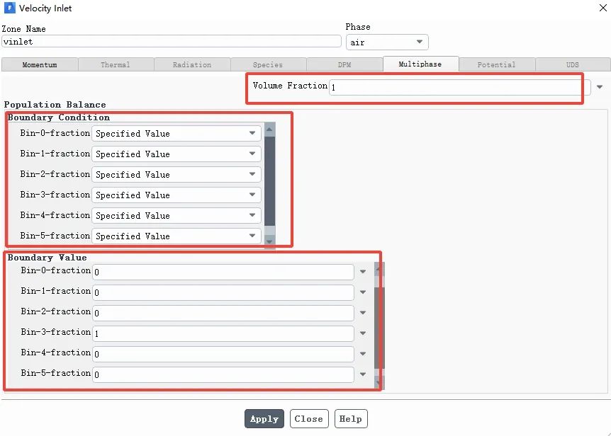 最上面的VOF等于1,表示进口全是颗粒/气泡。下面的Bin3-vof等于1表示进口颗粒的粒径只是bin3所表示的粒径。