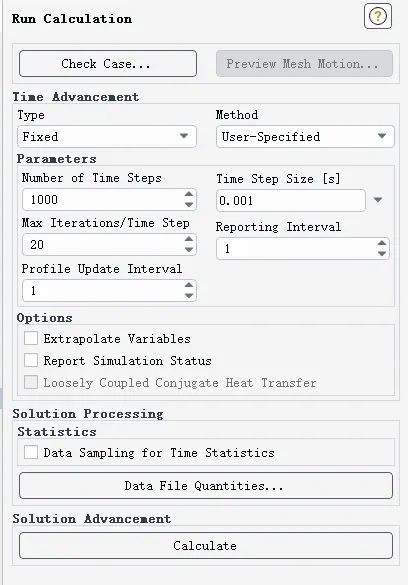 Time Step Size设置为0.001,时间步设置为1000步,每时间步最大迭代次数设置为20.