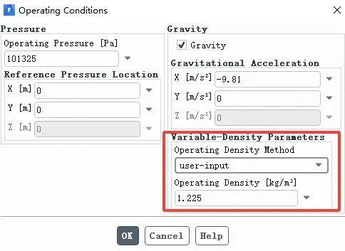 设置操作密度可加快收敛,对结果没有影响。在自然对流,打开布新涅斯克假设时,操作密度影响巨大。