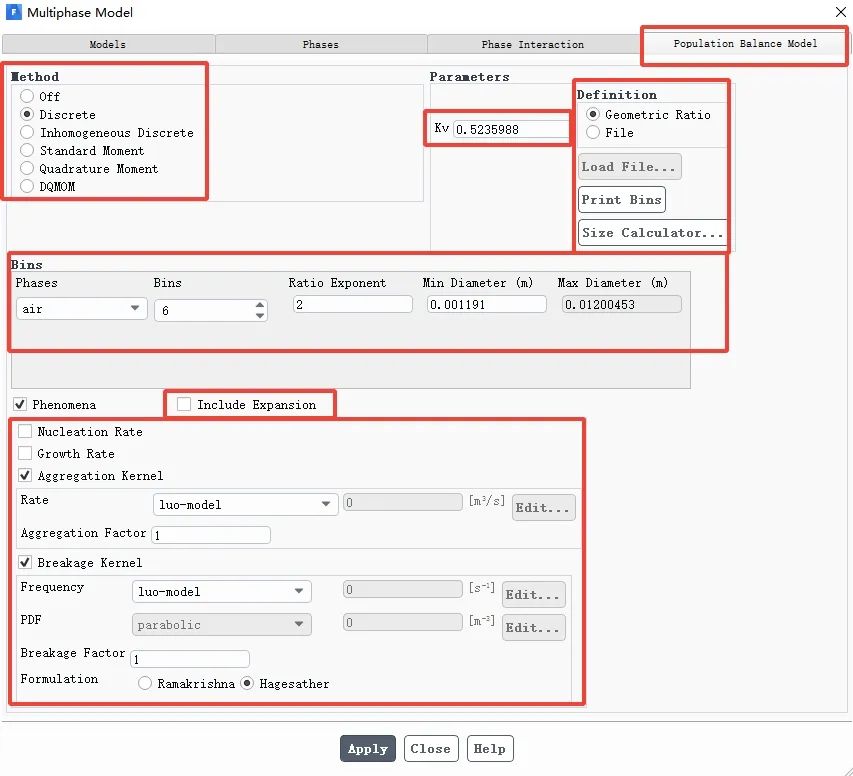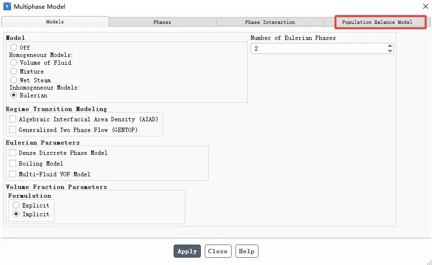 Population Balance Model,即PBM模型,点击此列可设置PBM模型
