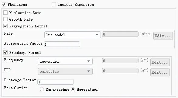 本案例勾选Aggregation Kernel和Breakage Kernel