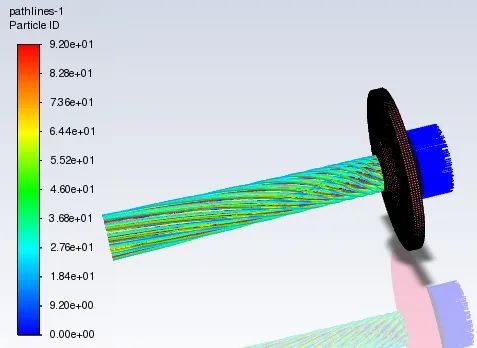 Draw mesh主要是为了显示部分物理模型,Path Skip设置为5,用于简化迹线数量。Release from Surfaces 选择swirling_air,表示显示swirling_air部分的迹线
