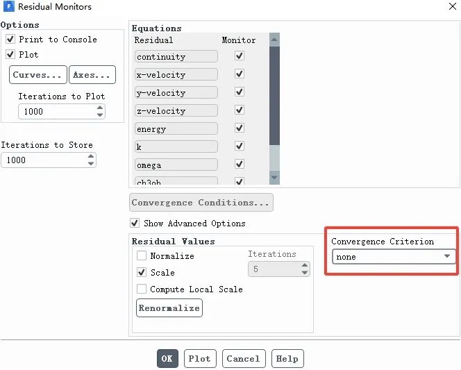勾选Show Advanced Options,Convergence Criterion 选择none,每个时间步不检查收敛性