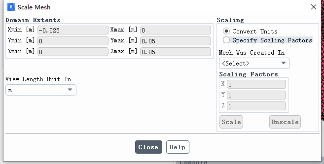 本案例模型尺寸保持默认即可,关于scale mesh详细设置查看Chapter31 Fluent空化模型