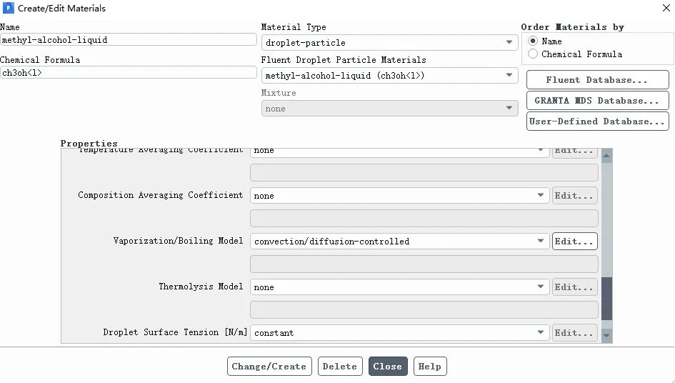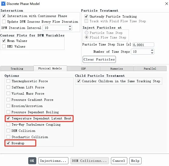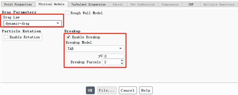 注:勾选Temperature Dependent Latent Heat ,表示考虑液滴温度对潜热的影响;勾选Breakup表示考虑液滴的破碎