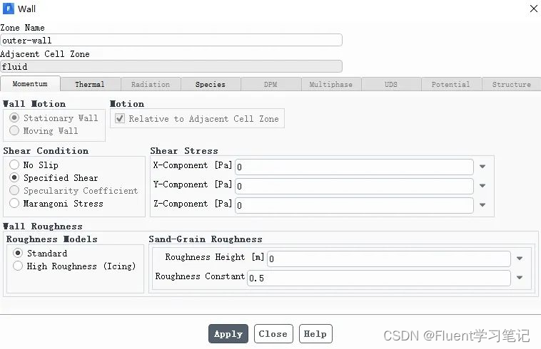 选择outer-wall,将边界类型改为速度入口wall,双击outer-wall边界,弹出如下界面
