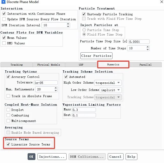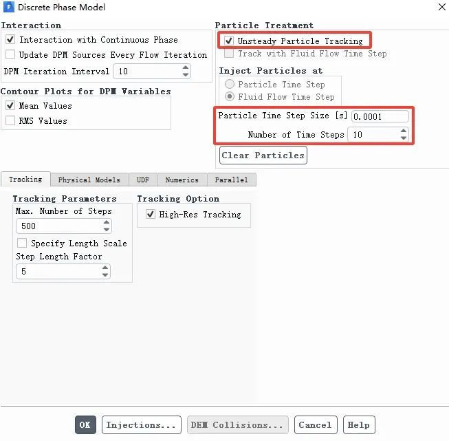 勾选Interaction with Continuous Phase,考虑离散相轨迹对连续相的影响