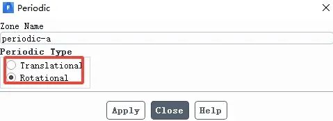分别单击Periodic的periodic-a和periodic-b,将Periodic Type栏改为Rotational,这里主要是将两个周期性 边界 改为旋转周期性,默认为平移性周期。