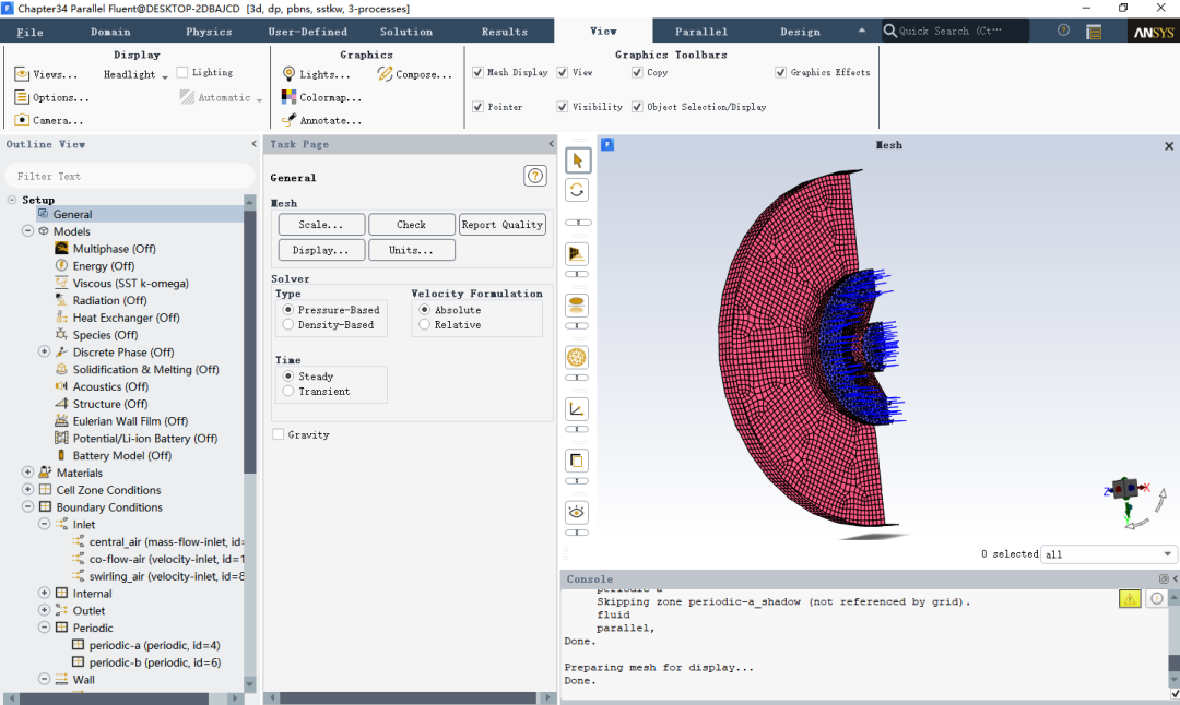 使用Fluent软件打开Chapter34.msh.gz网格文件,文件在本文末尾链接资源内。