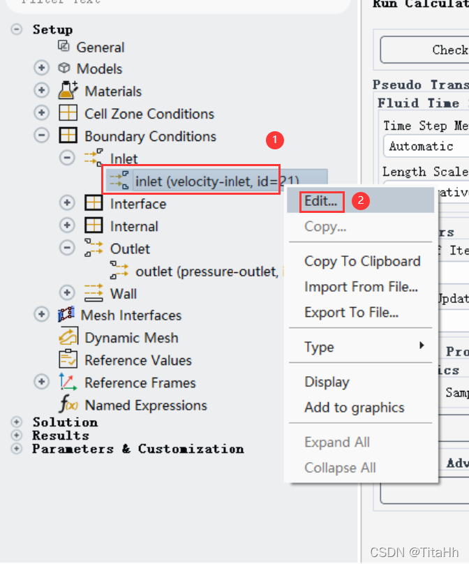 2.右击“Inlet——Inlet(velocity-inlet,id=21)”,在弹出的对话框中选择“Edit...”。