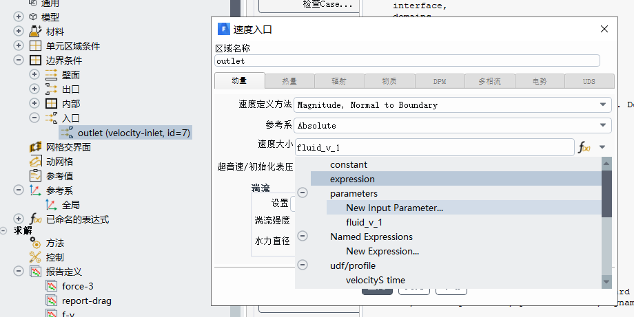 6. Boundary边界条件(出入口,湍流强度和水力直径,壁面粗糙度,壁面运动旋转)