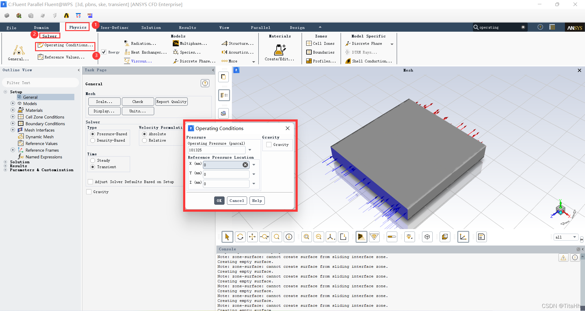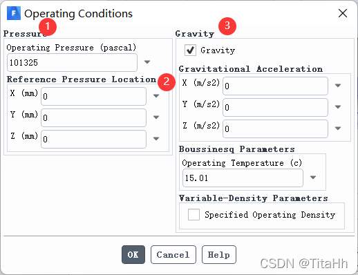找到“Physics——Solver——Operating Conditions”,弹出如图所示的 对话框 。